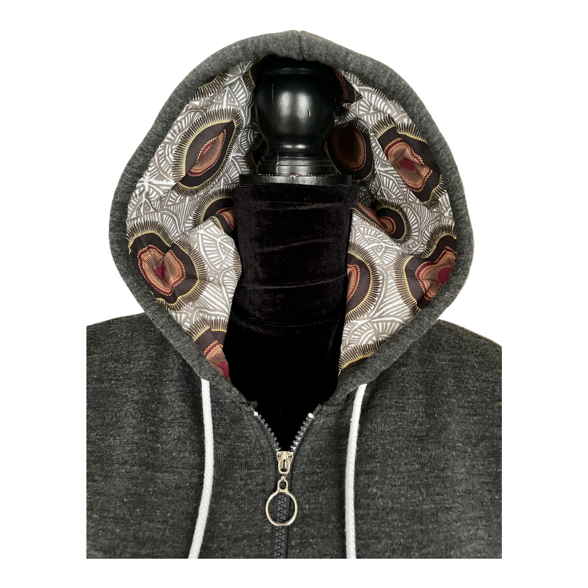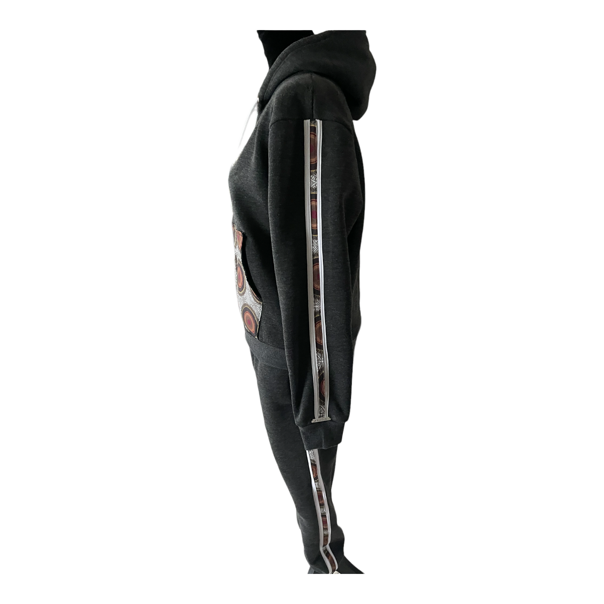 Lounge meets legacy in this elevated grey jogger set with a modern twist. Featuring a crisp white African print accenting the front pocket, hood lining, and side seams, this set blends comfort with cultural expression.
